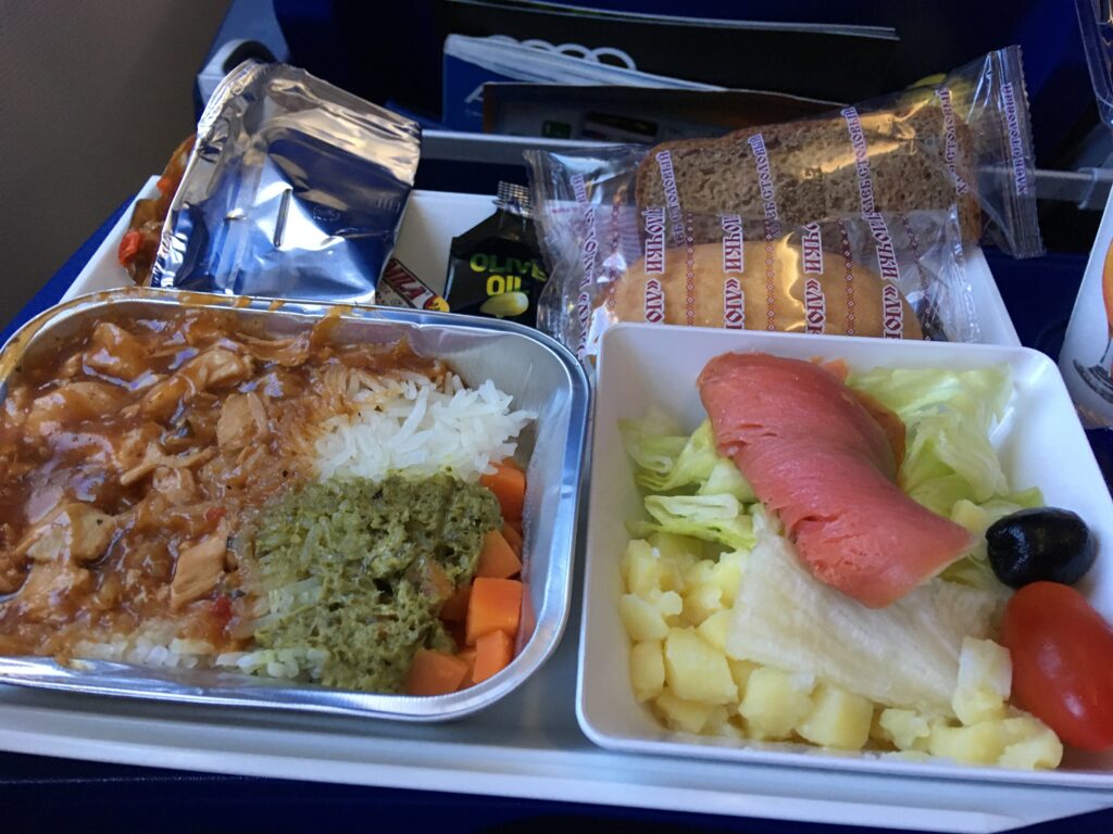 飛行中、ほとんど寝ていた💤機内食はこんな感じ、結構美味しかったね🍽️