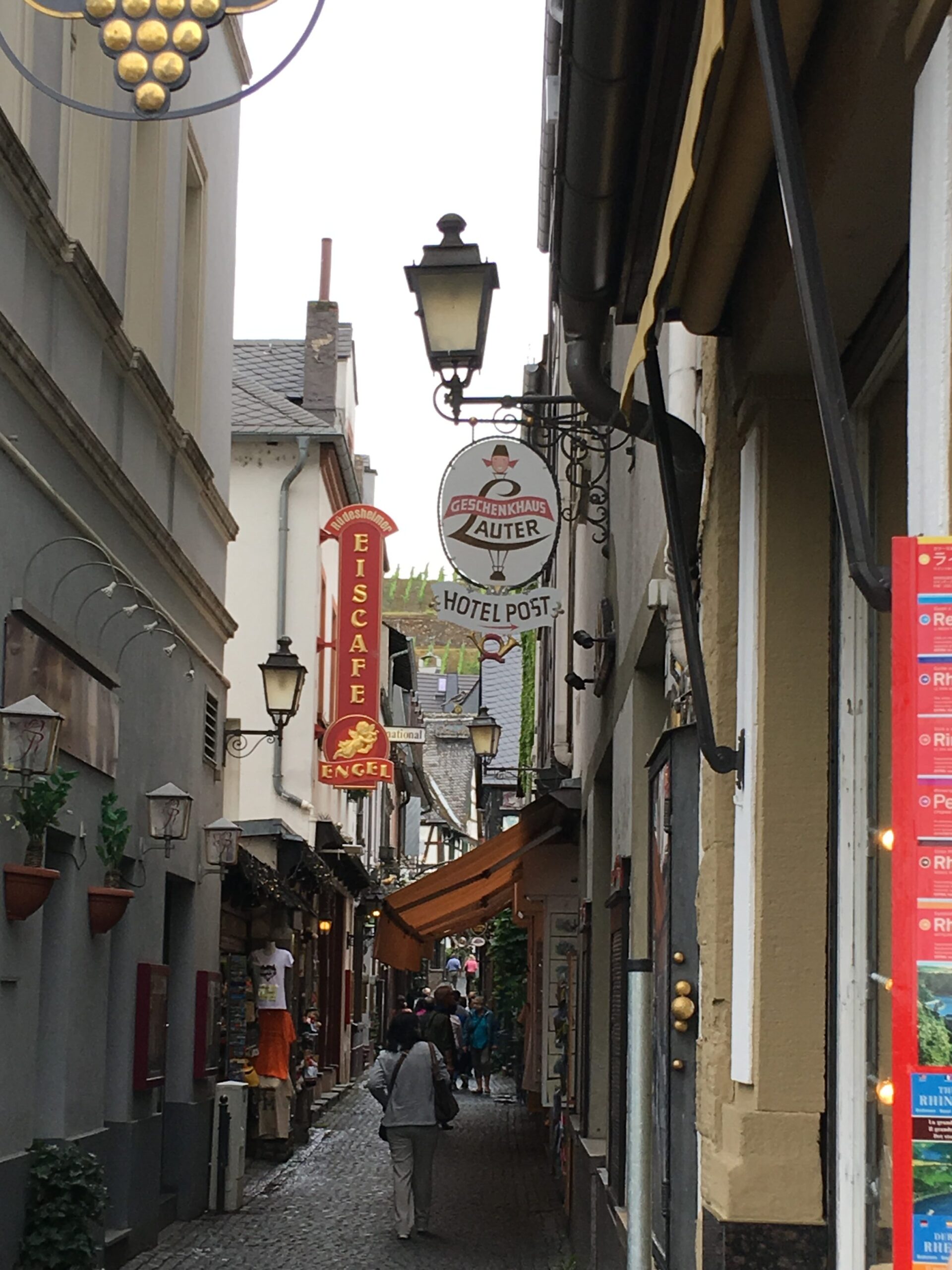 ライン川近くのお店の路地、こういう場所もかわいくて好き💕 この飛び出してる感じの看板、かわいい〜〜