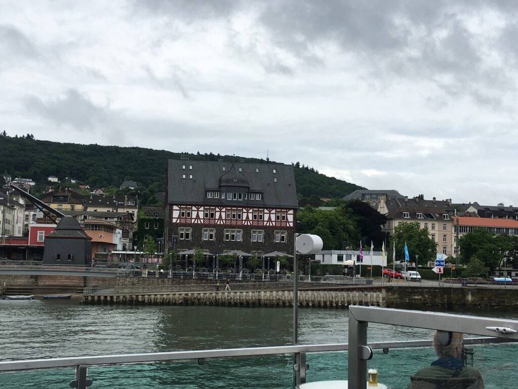 ライン川を船に乗って移動中。街並みがかわいい、ヨーロッパ感が好き💕