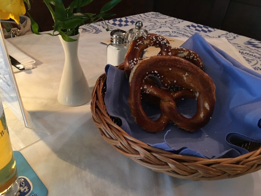 ドイツといえばプレッツェル 甘そうに見えるけど白いのは塩でしょっぱい系、で、ちょっと硬い系
