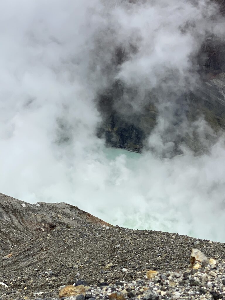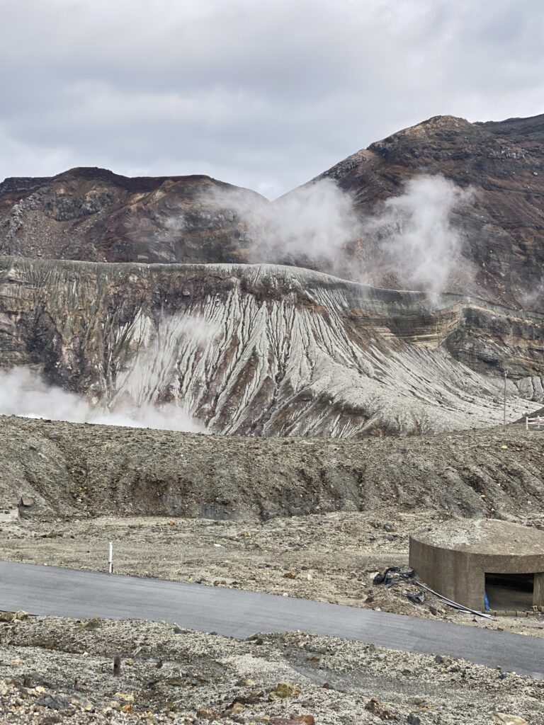 火口です、時により有毒ガスが出ているそう。喘息の方はいけないそうです。時々、硫黄のような匂いがしました。私が行ったときは有毒ガスは出ていなかったのですが、午後からは有毒ガスが発生しており火口近くまではいけなかったようです。(草千里にある、ビジターセンターで確認できます)